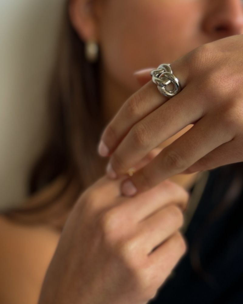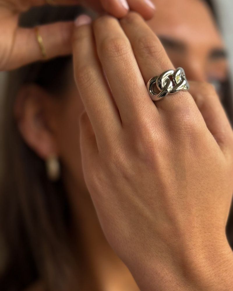 Anillo tipo cadena increíble para no pasar desapercibida, simple para uso diario y perfecto para combinar con más anillos.