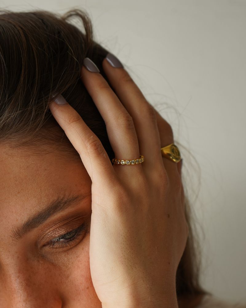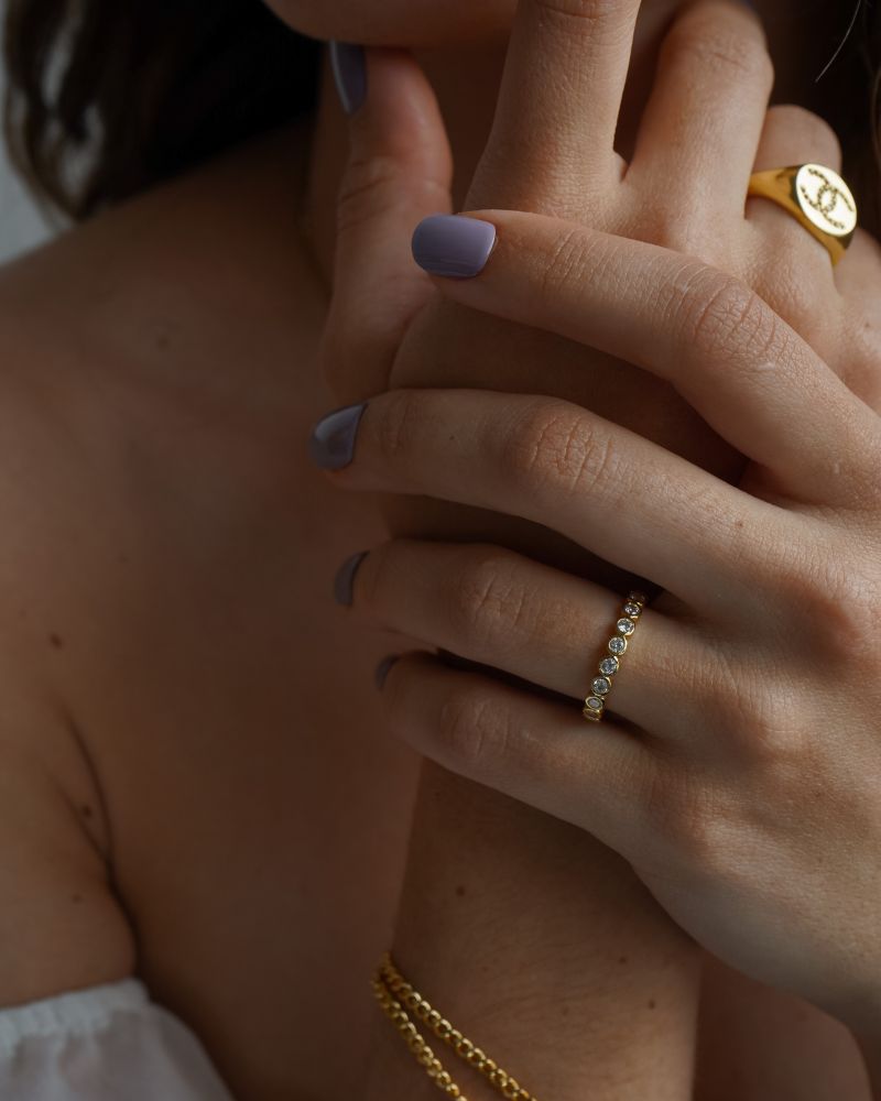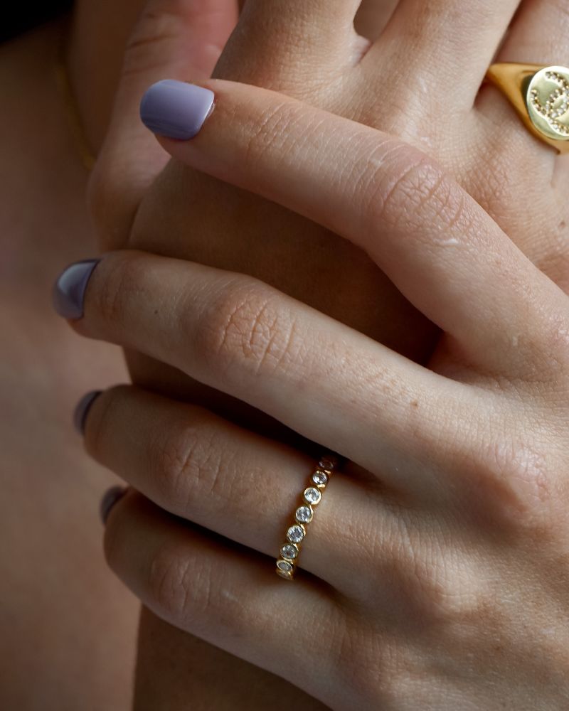 Anillo tipo cintillo con cristales.
