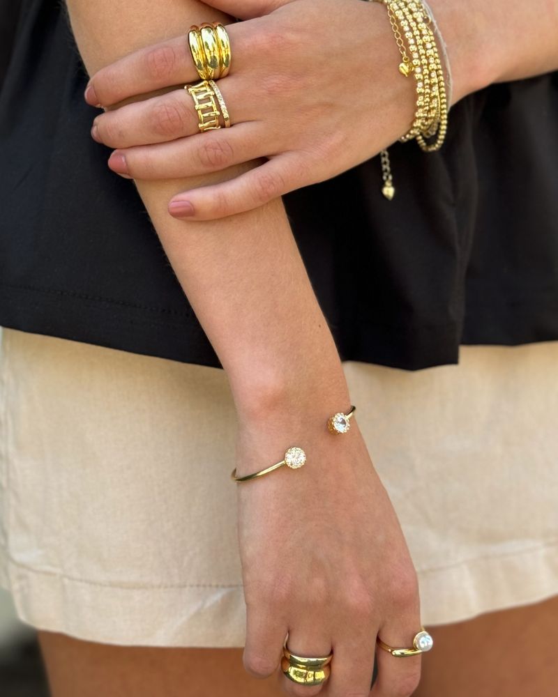 > Metal Base Bronce con enchape en Oro 18k y barniz protector libre de níquel.