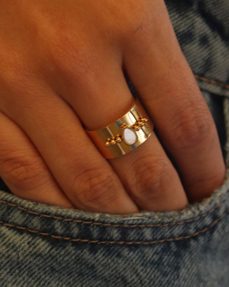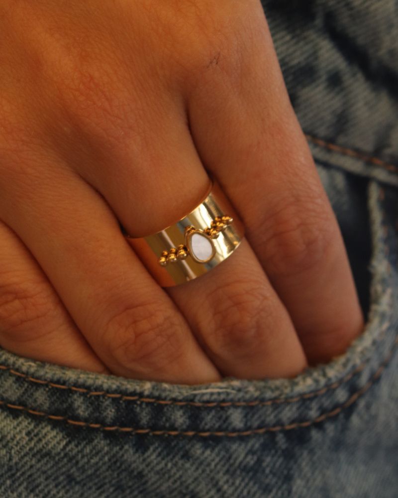 Anillo grueso con detalle de piedra Concha Nácar increíble para no pasar desapercibida. Perfecto para uso diario y para combinarlo con otros anillos.