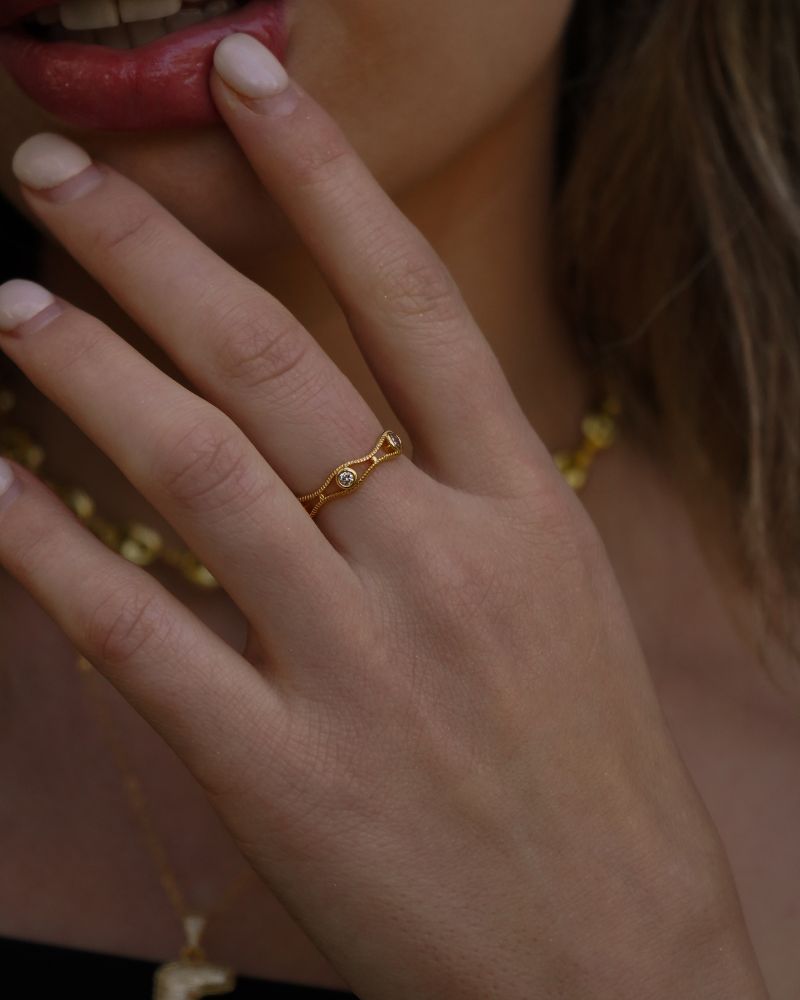Anillo delicado, con detalle de circones , estiloso, para uso diario, ideal para combinar con otros anillos.