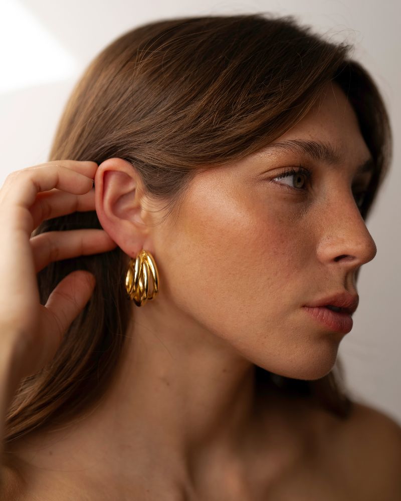 Aros tipo Argolla, pero versión triple, Increíbles para toda ocasión, gruesas para no pasar desapercibida pero ultra livianas para no sentirlas.