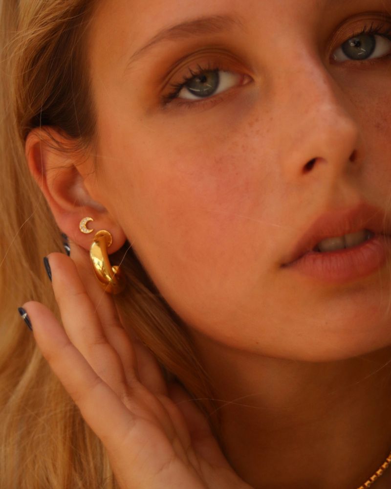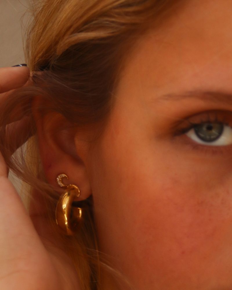 Aros de Luna con circones, el Arito ideal para segunda o tercera perforación, sutil para el día a día, pero también tiene un toque elegante.