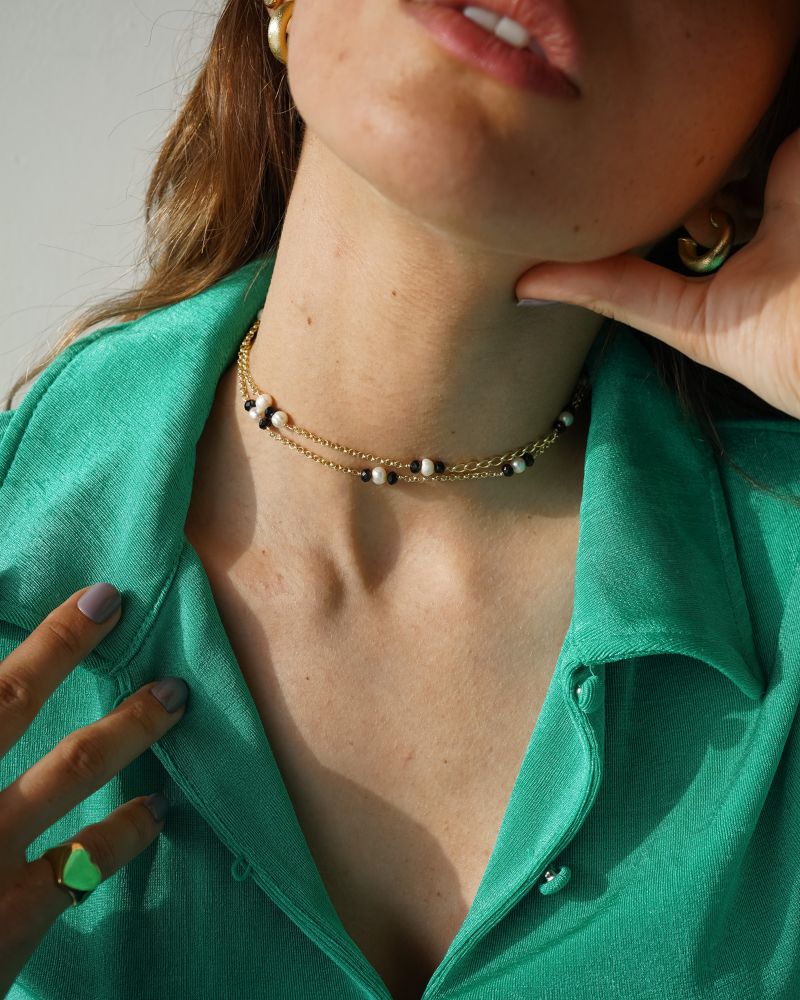 Largo 72cm aprox, puede variar ya que las cristales y perlitas son naturales y no tienen todas la misma dimesión.