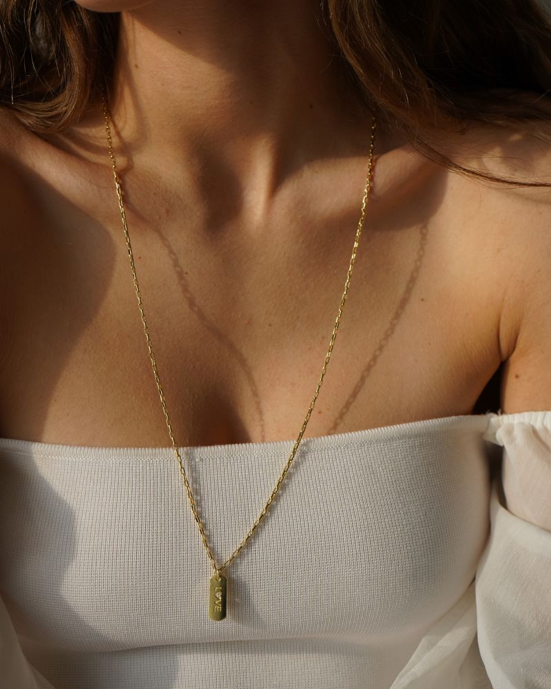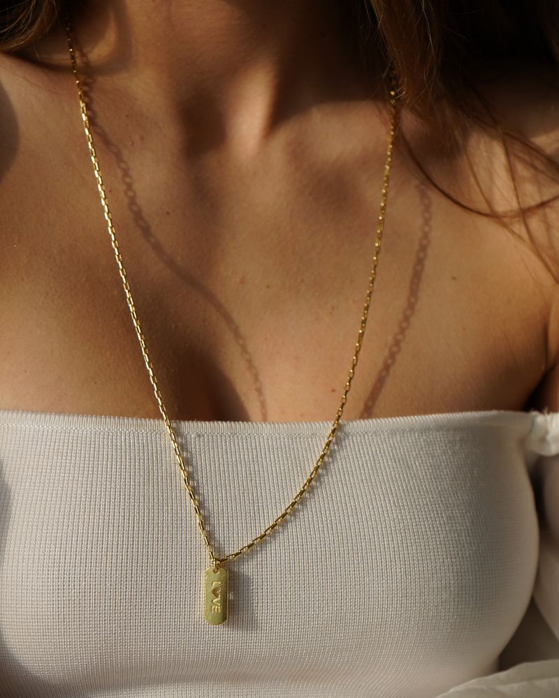 Cadena sutil y elegante con Chapita con palabra Love, para uso diario.