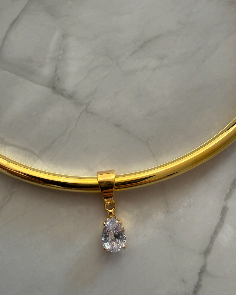 ✨ Esta versión de Choker rígida esta full tendencia para esta temporada y tiene un brillo en forma de gota al medio que iluminara tu rostro, puedes sacar y poner el Brillo para usarlo como mas te guste según la ocasión.