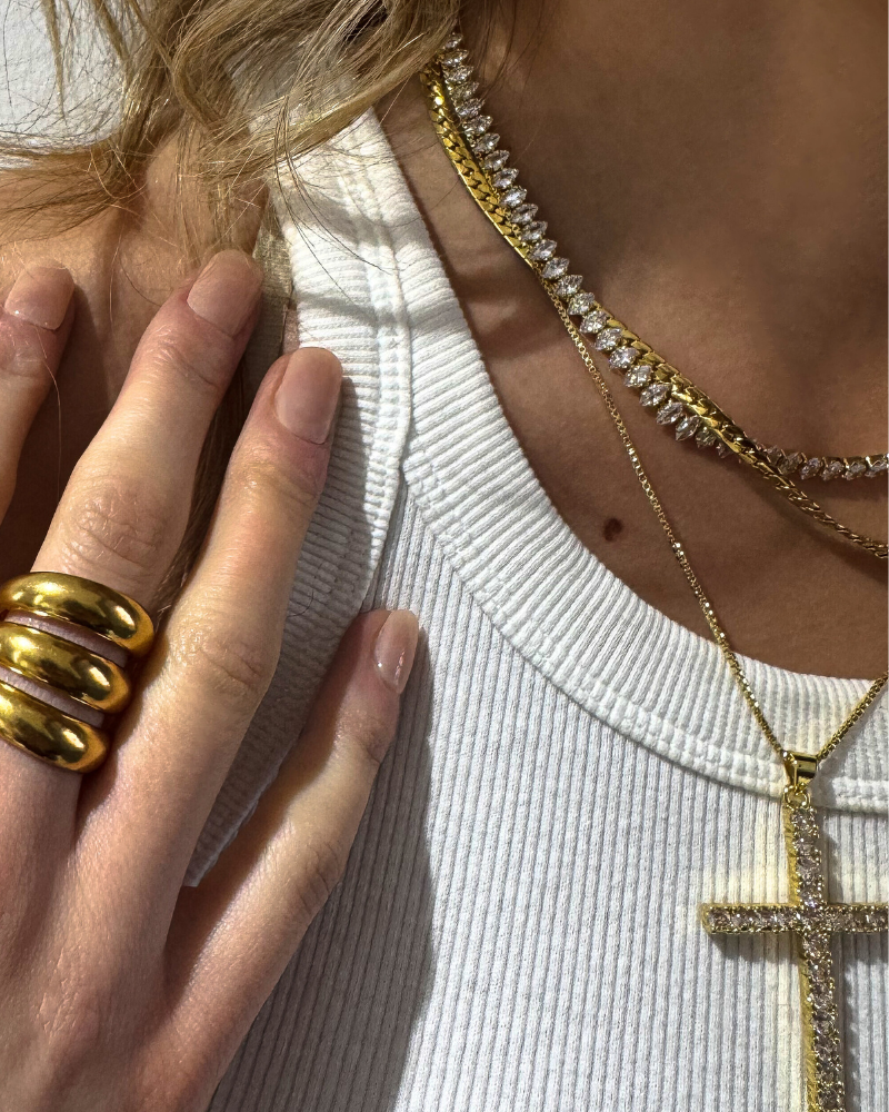 > Base metal Cobre, enchape en Oro 18k, libre de níquel, con cristales circonita,