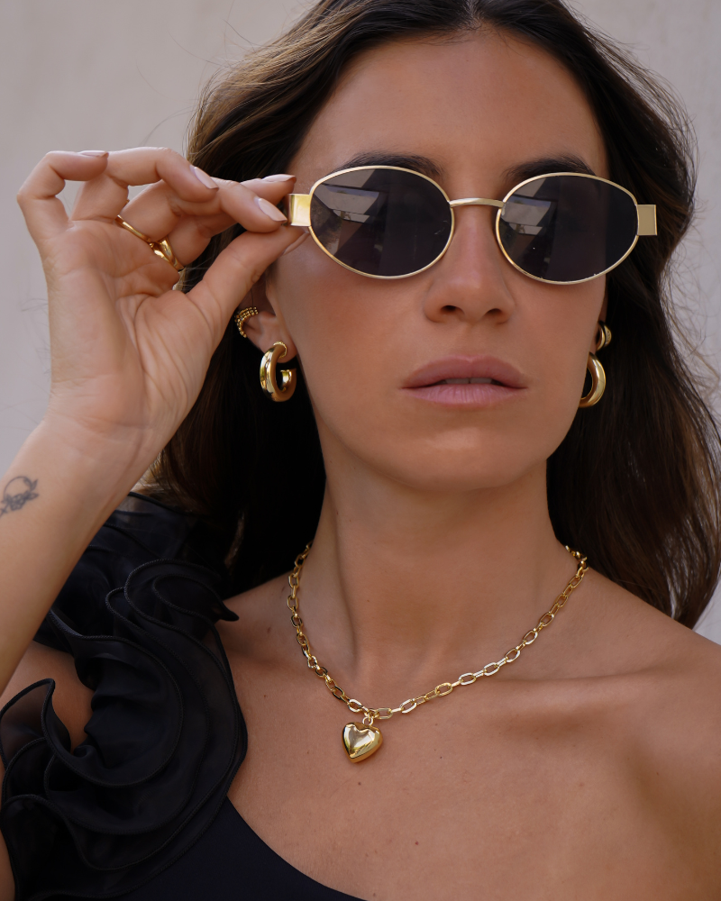 Collar con imponente Corazón al medio, pensada en elevar cualquier outfit, imposible no enamorarse, con cadena de eslabones gruesos para no pasar desapercibida.