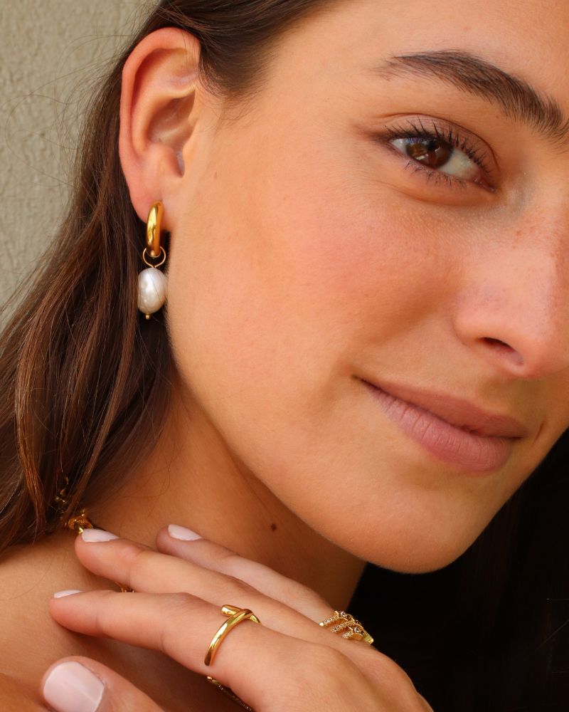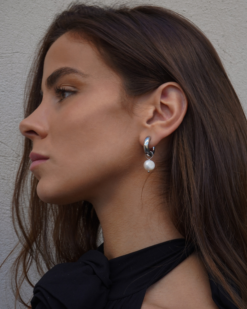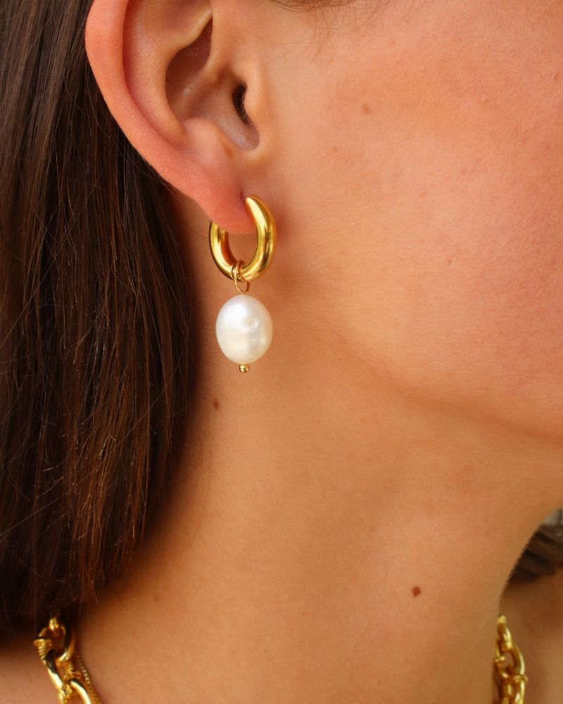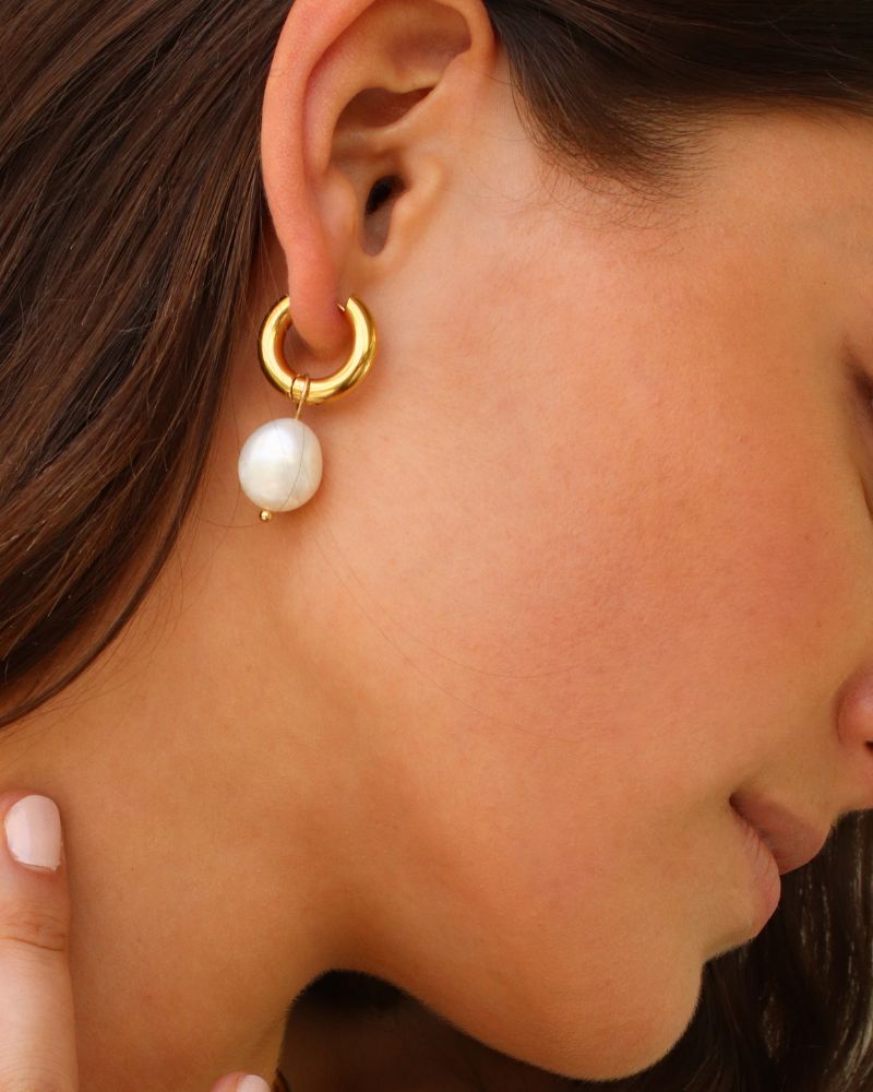 Aros tipo Argolla con detalle de Perla natural colgante, increíbles para el día a día o para un look más formal todo depende de tu outfit.